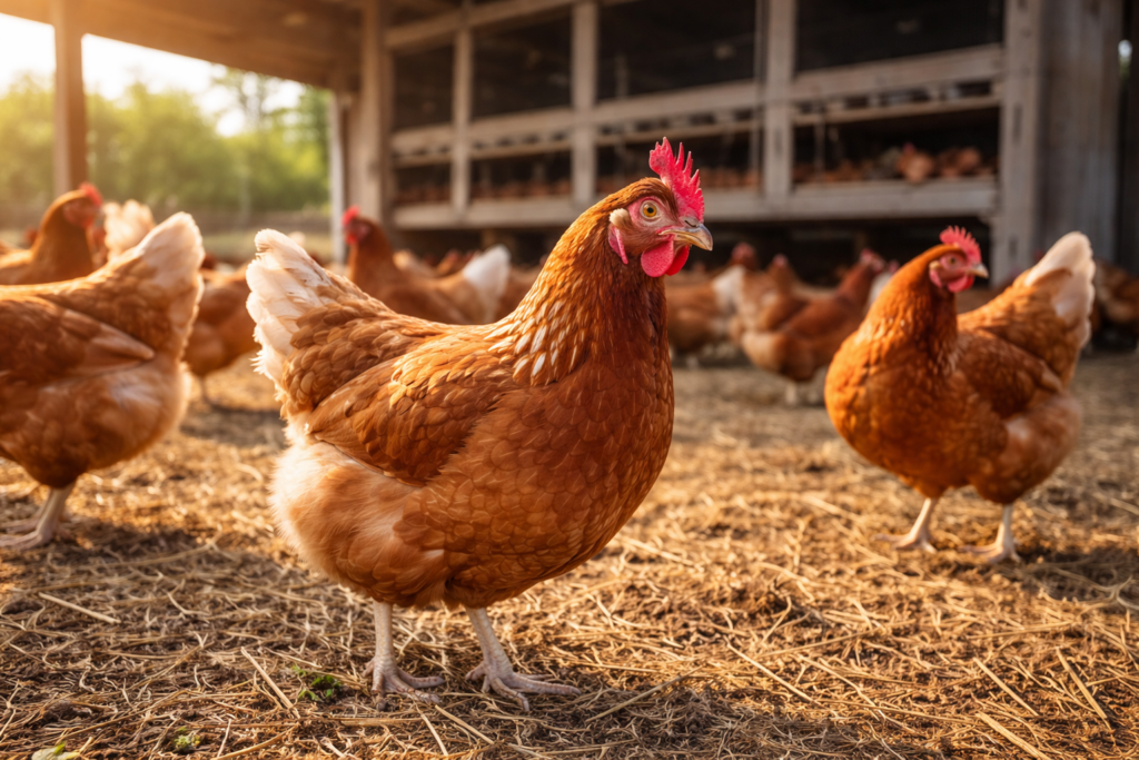 まず「平飼い」は鶏が鶏舎の内外を自由に動き回れるようにした飼い方で、なかでも日中のほとんどを野外で飼っているものは、「放し飼い」と呼ばれます。「平飼い」と聞いて「放し飼い」をイメージした方も多いかと思いますが、「平飼い」は鶏が鶏舎の内外で動くことが可能、「放し飼い」は鶏が小屋と野外を自由に動ける、と区別できます。