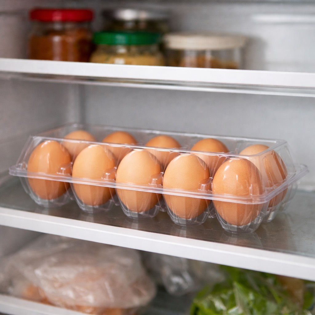 冷蔵庫のドアポケットに卵専用のケースがついていることがありますが、この場所は冷蔵庫の開け閉めをする際に温度が上がるなど低温の状態を保てない為、パックのまま冷蔵庫の中に保存するのが好ましいです。